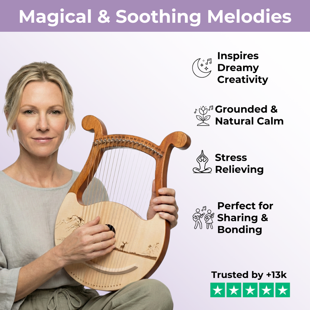 Each lyre harp is crafted from high-quality wood, ensuring durability and rich acoustic resonance. Designed for both beginners and professionals, our lyre harps produce warm, melodic tones with excellent pitch stability.