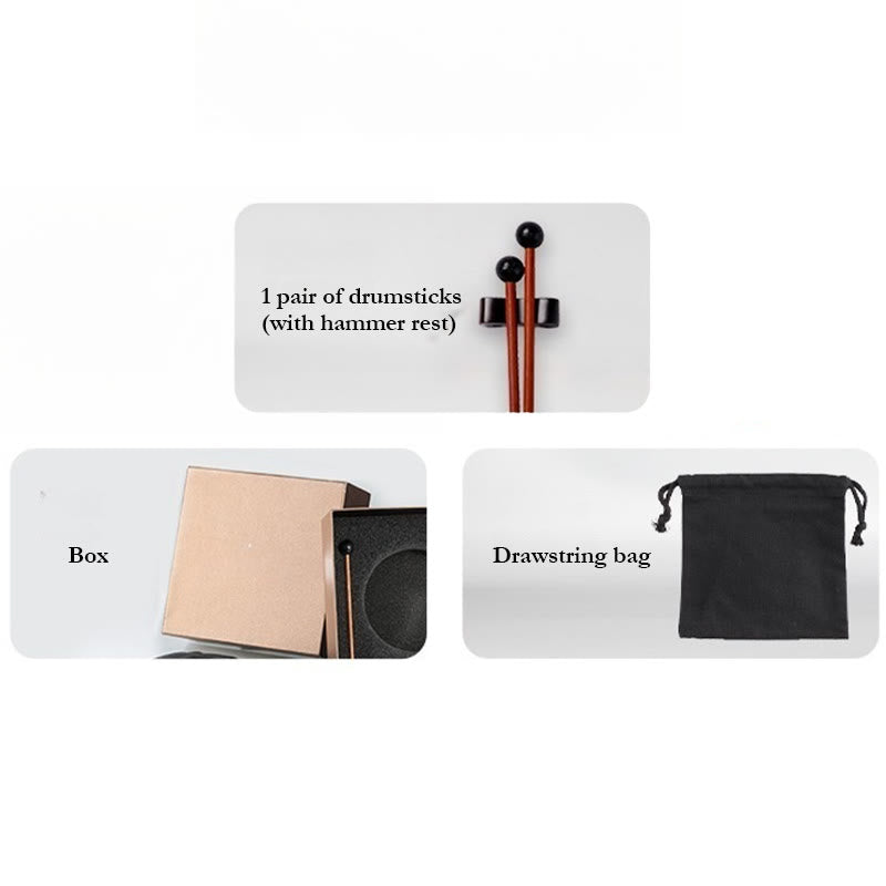 The Steel Tongue Drum features 8 perfectly tuned notes, crafted from premium titanium steel alloy for exceptional sound quality and durability. Available in elegant silver or sophisticated black finishes, this compact 6-inch drum fits comfortably in your hands while delivering remarkably rich tones.