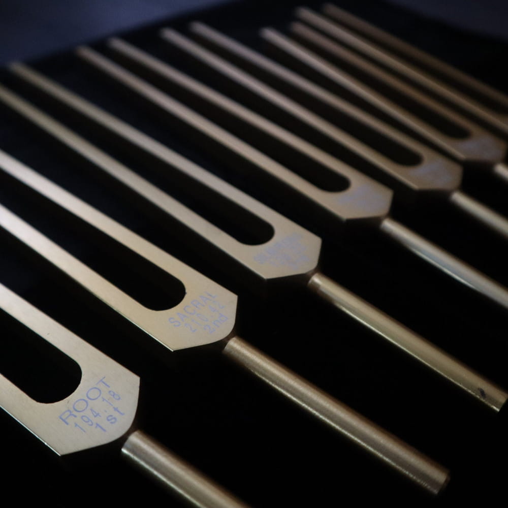 Combining tuning forks with singing bowls can create a layered sound therapy experience. The precise frequencies of tuning forks enhance the rich overtones of singing bowls, providing a more profound healing effect by engaging different aspects of the body’s resonance.