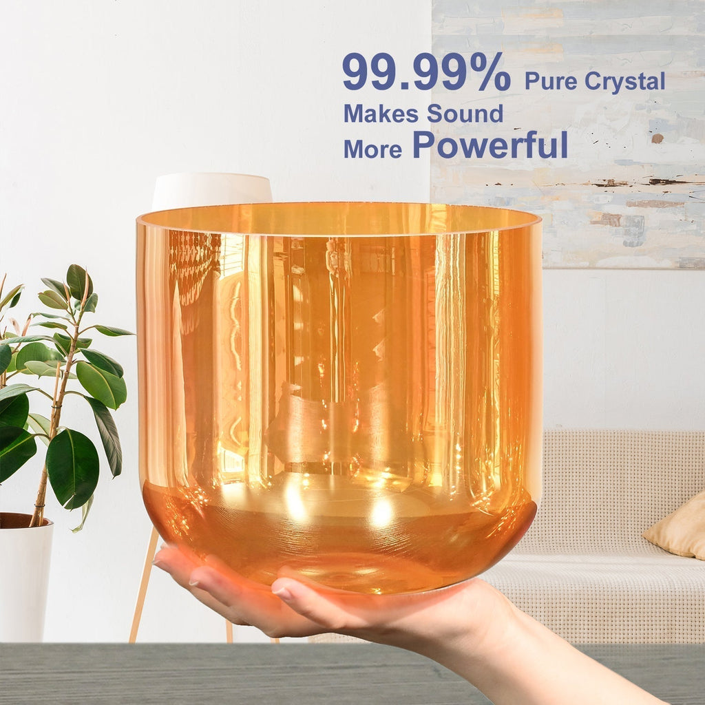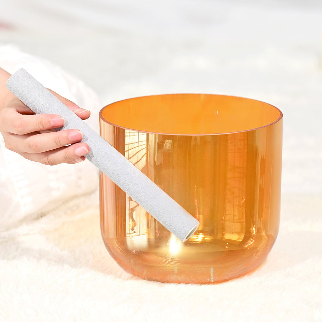 Crafted from premium quality clear quartz crystal, this singing bowl produces resonant tones that fill your space with penetrating vibrations you can feel in your body. When you strike or rim the bowl, the sustained sound waves create an unmistakable physical sensation—a gentle humming that quiets mental chatter and guides you effortlessly into meditation. The vibrant orange color corresponds to the sacral chakra, supporting creative flow and emotional release during your practice.