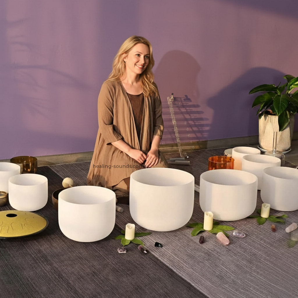 Koshi chimes, triangles, rain sticks, and ocean drums add soothing textures. Together, these tools amplify the transformative effects of sound healing.