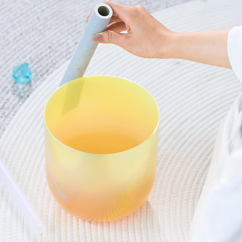 Crafted from high-quality quartz, this yellow crystal bowl is designed for practitioners who recognize that not all singing bowls are created equal. Its vibrant yellow hue naturally aligns with the Solar Plexus Chakra—the energetic center governing your inner confidence, personal power, and sense of self-worth. When racing thoughts from a high-pressure day make it nearly impossible to settle into stillness, this bowl offers an auditory anchor that cuts through mental noise and guides you directly into presence.