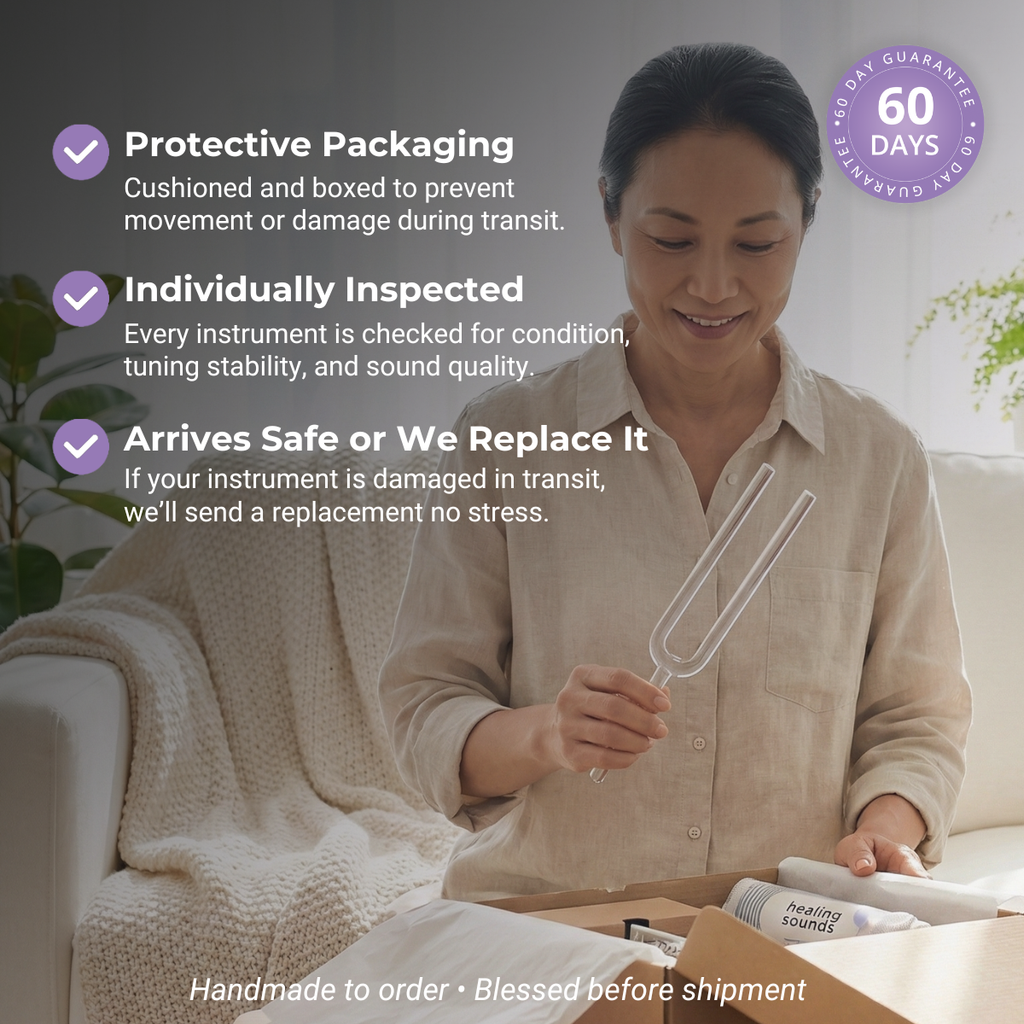 Each crystal tuning fork is handmade to order, ensuring the highest quality craftsmanship and precision tuning. This artisanal process guarantees an instrument that meets the highest sound healing standards.