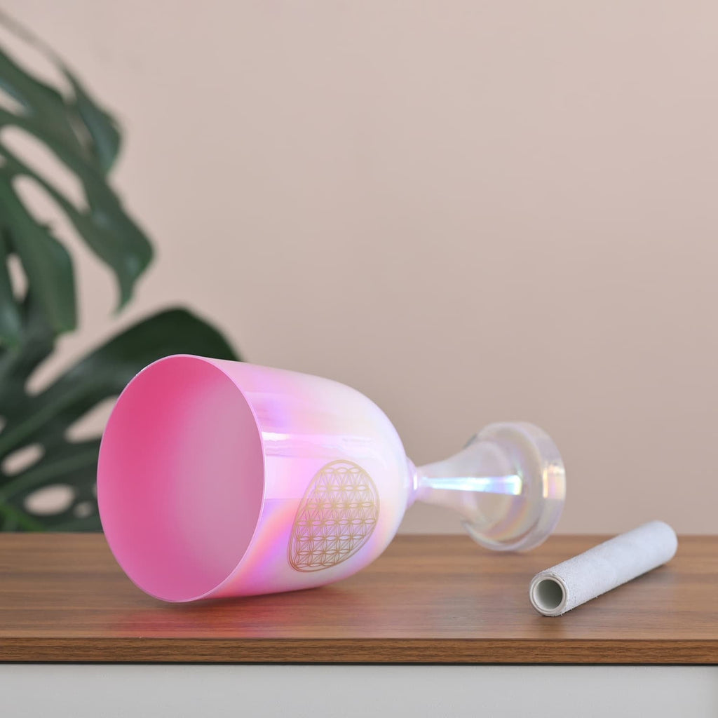 Discover the transformative qualities of sound with the Healing Sounds Dream Pink Chalice Crystal Singing Bowl. This exquisite crystal singing bowl is expertly crafted to produce a pure and ethereal tone, ideal for chakra practices and meditation. Each note corresponds to specific chakras, supporting energy flow and spiritual balance. Enhance your meditation sessions and enjoy a sense of inner peace and harmony as the sound resonates deeply within.