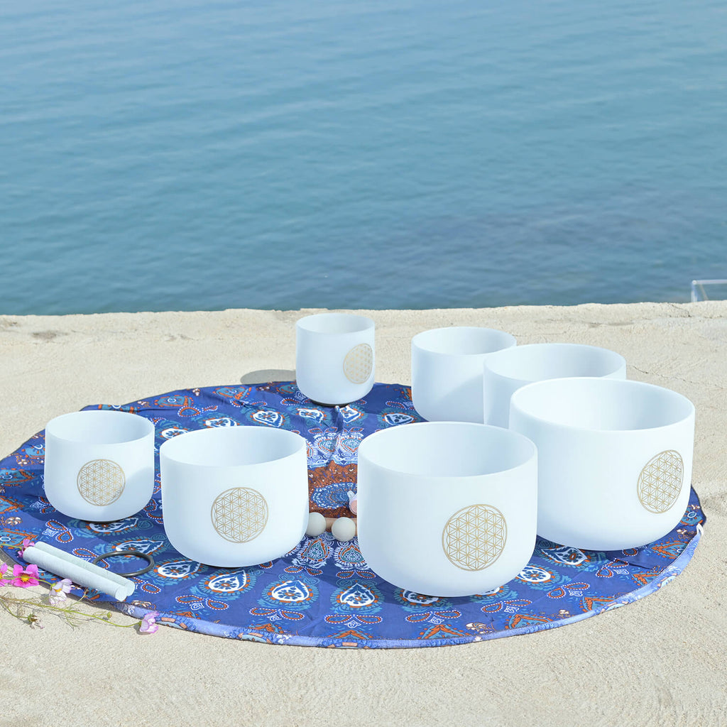Flower of Life Quartz Crystal Singing Bowl Set for Meditation