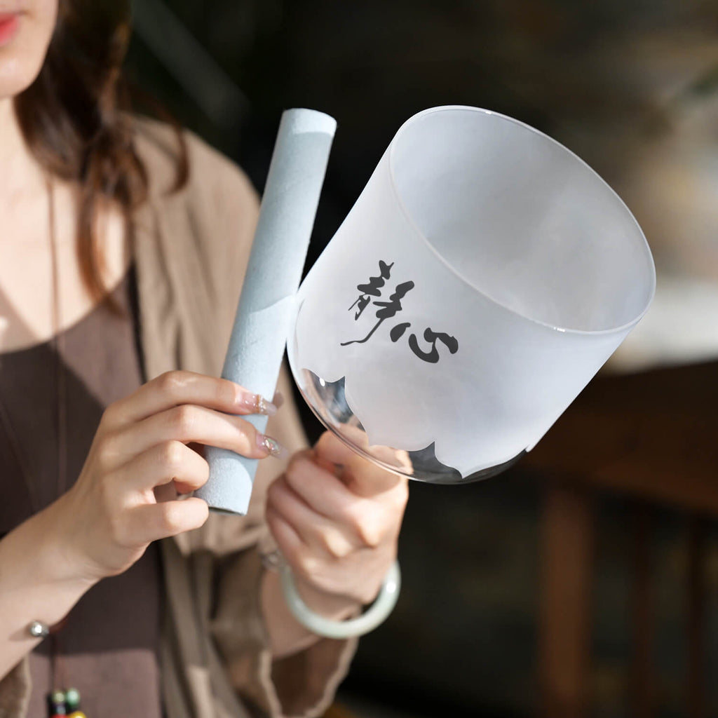Crafted from high-purity quartz, this crystal singing bowl produces exceptional sound quality with remarkable sustain that continues to resonate long after the initial strike. Feel the vibrations travel through your body, addressing the tension stored in tight shoulders and anxious thoughts. The molecular structure of pure quartz generates rich, layered harmonics that don't just mask your stress—they help release it from your energetic field.