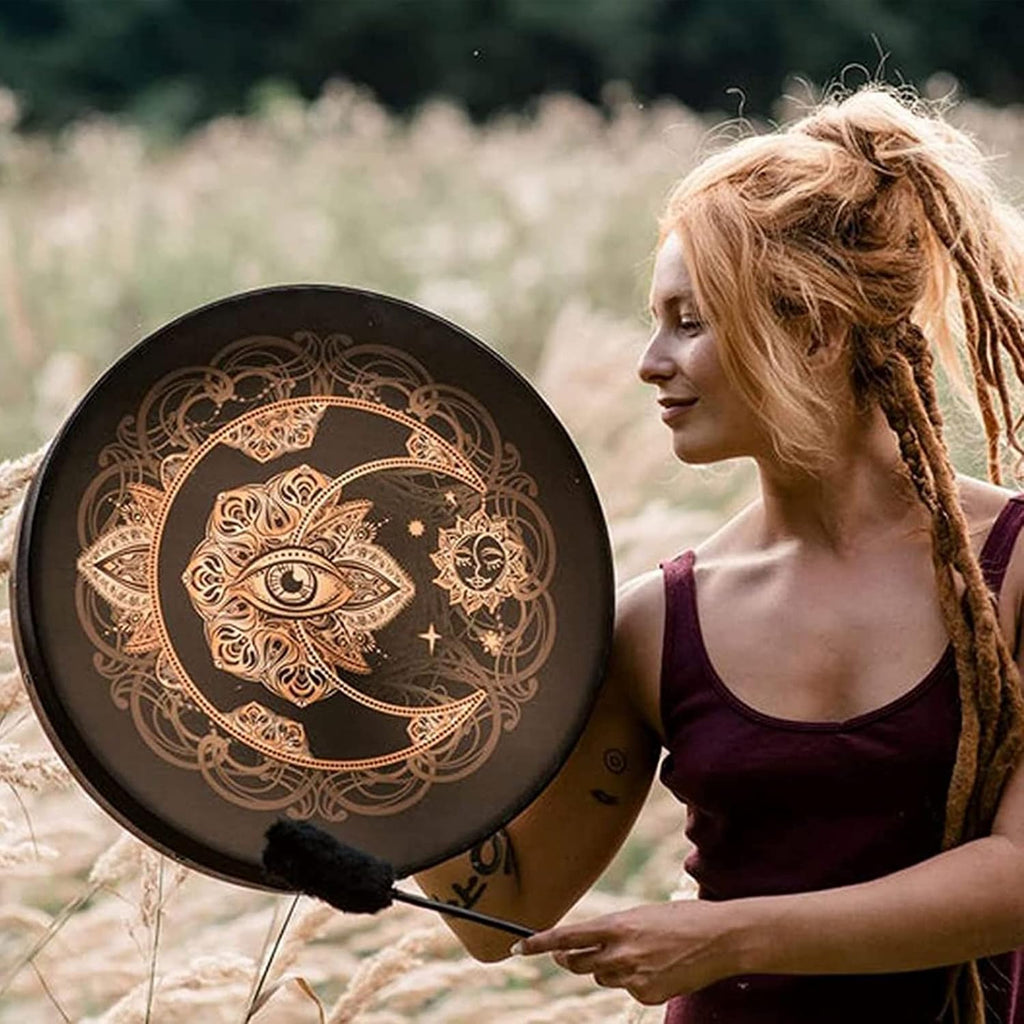- Medium drums (18" - 22" / 45 - 55 cm) → A balanced choice between deep resonance and portability. These drums provide rich, warm tones suitable for rituals, group ceremonies, and meditation.